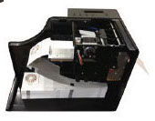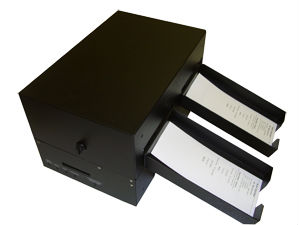 The Lemur-2P is a dual-path printer with storage cabinet. All Lemurs come standard with USB, parallel and Serial (RJ12 connector) interfaces. Display, Cutters, Ethernet, Bluetooth and WiFi are available as options.
